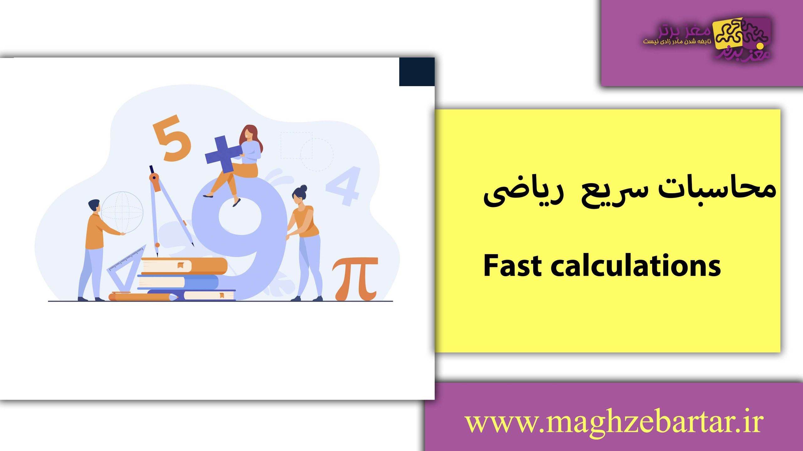 محاسبات سریع ریاضیات به مجموعه اعمال و شیوه هایی گفته می شود که منجر به حل سوالات ریاضی از راه های ساده تر ، و به طبع آن در زمانی کم تر می شود. در این شیوه ها ، معمولا از روش ها و تکنیک های جدید و خاصی استفاده می شود که ما را در رسیدن به جواب درست ، در زمانی کم تر راهنمایی می کند.این موضوع را به یاد داشته باشیم که ممکن است افرادی ضریب هوشی بیشتری داشته باشند.(به صورت مادرزادی) ودر محاسبات تاحدودی سریع عمل کنند ، ولی اگر بخواهیم به صورت کلی این قضیه را در نظر بگیریم ، می توانیم بگوییم که با وجود هوش زیاد نیز این راه حل ها باید فرا گرفته شوند ، تا در محاسبات ریاضی موثر واقع شوند.